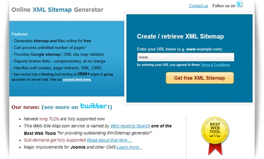 위에서 안내해 드린 사이트에 접속하시면 Create retrieve XML Sitemap창이 보일 것 입니다.